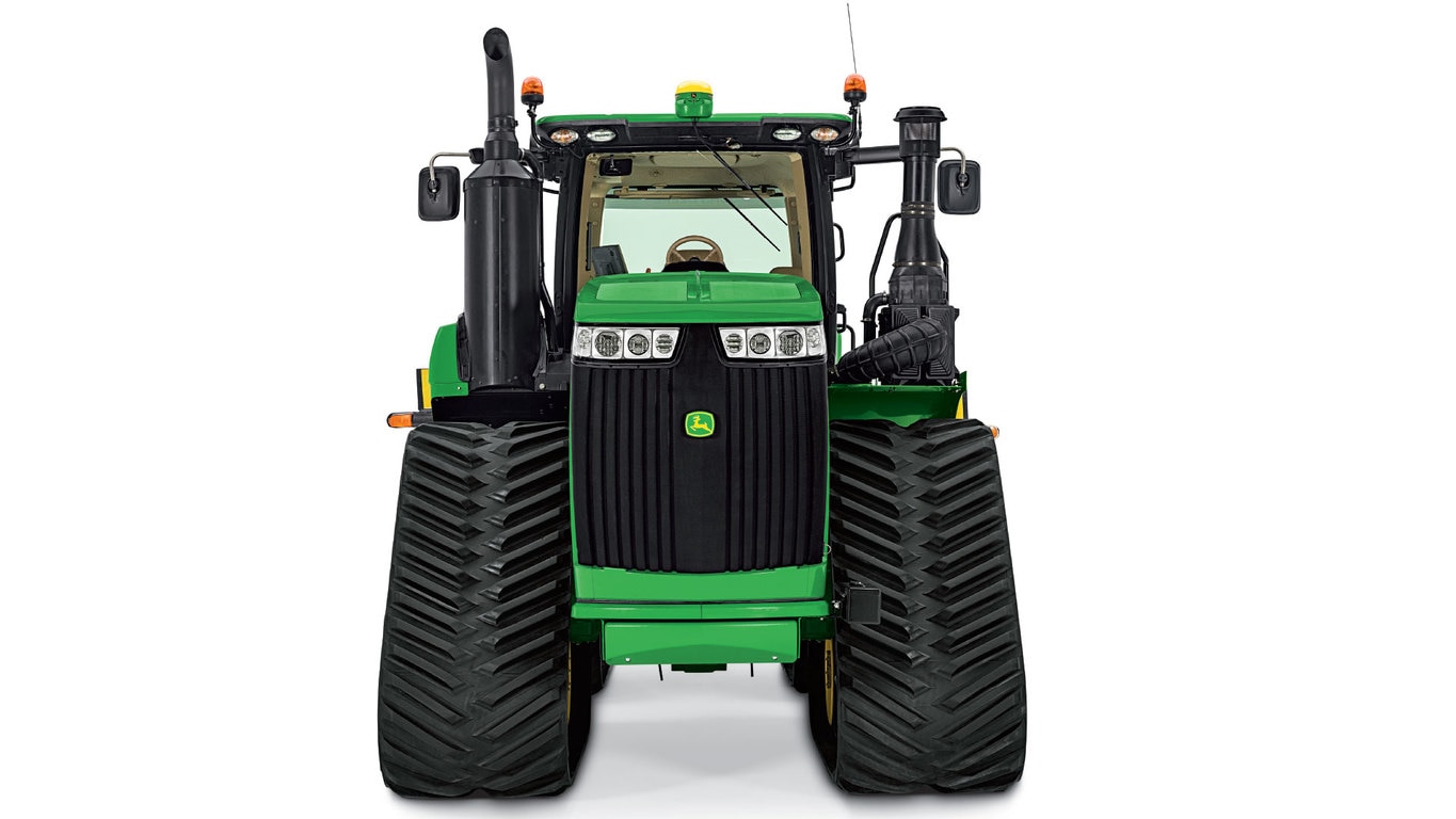 9RX Series Tractors equipped with 304.8-cm (120-in.) track spacing provide increased stability, allow producers to operate on 304.8-cm (120-in.) centers for controlled traffic farming, and provide improved track-to-frame clearance for better access to the undercarriage for serviceability and material cleanout. John Deere is the first and only tractor manufacturer to offer a 304.8-cm (120-in.) track spacing option on four-track tractors with 76.2-cm (30-in.) and 91.4-cm (36-in.) tracks up to 462.3 kW (620 hp).